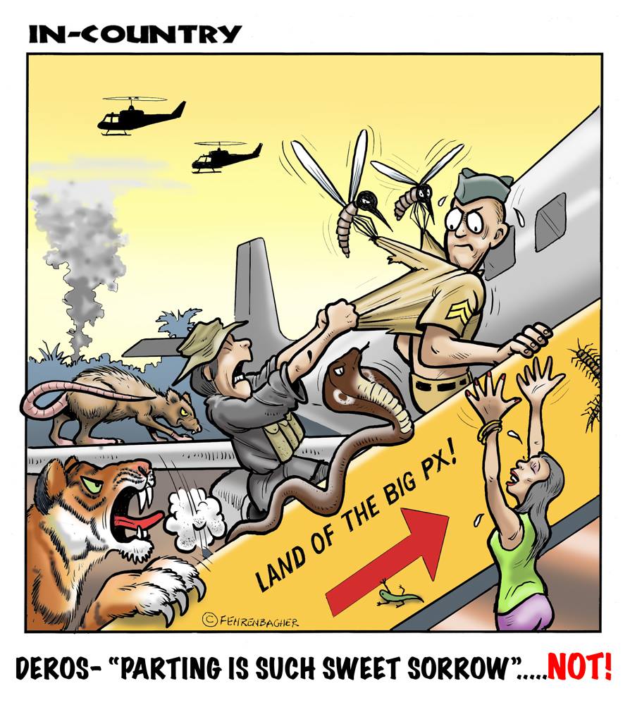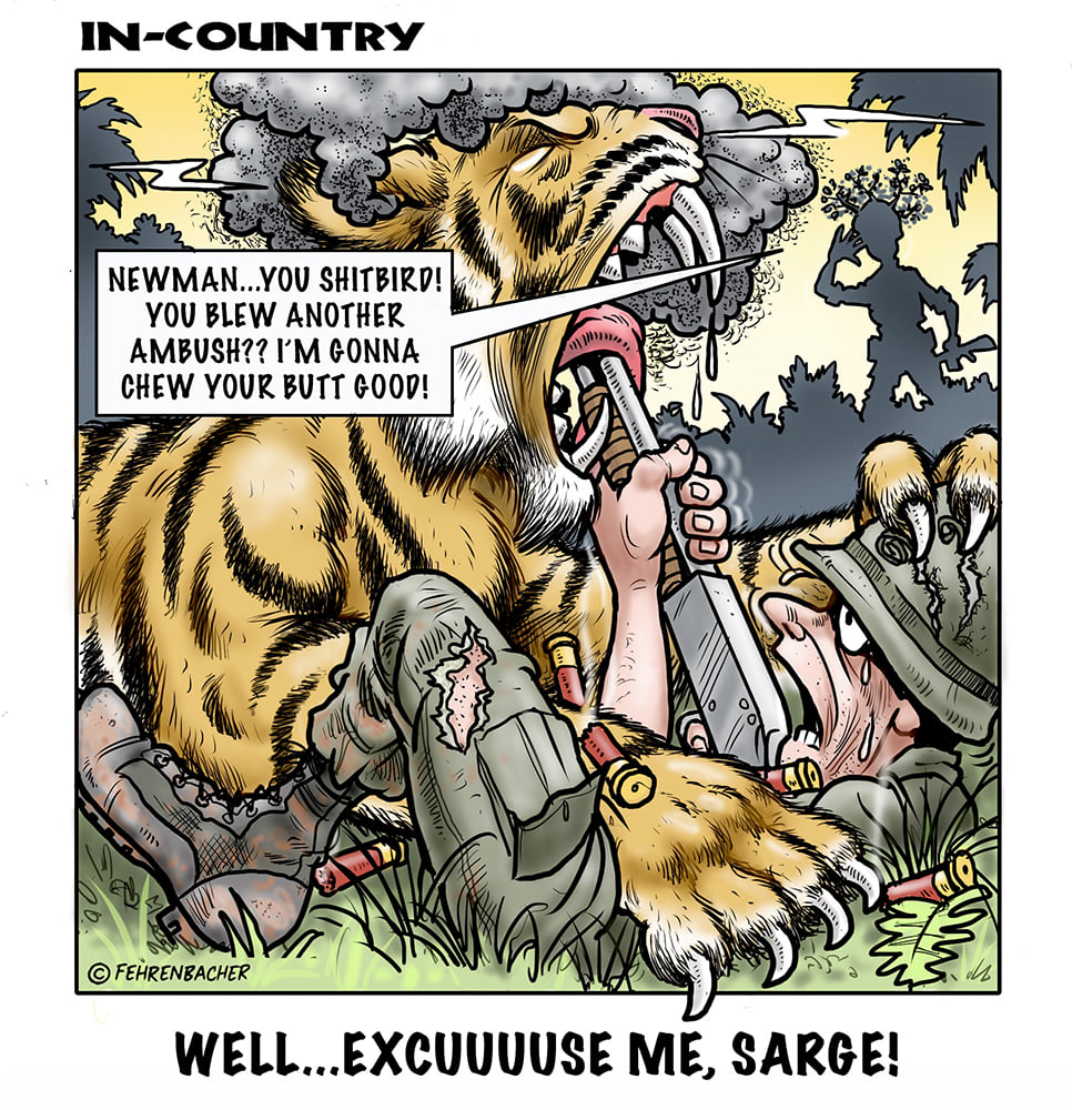Phil enlisted in the Army in 1965 where you served for years in Vietnam. He became a graphic designer and has worked for the state of Oregon for 26 years. He retired in 2003 and started the Cartoon "In-Country". The cartoons reflect his experiences during his tour of duty in South Vietnam.